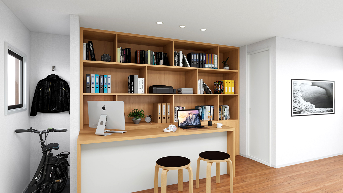 生活空間と分け、集中できる環境を確保。